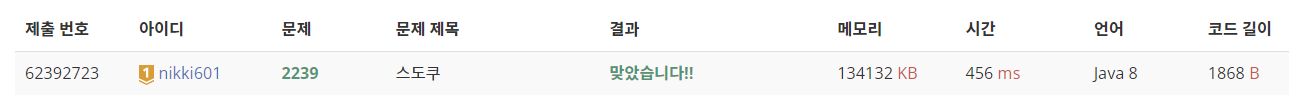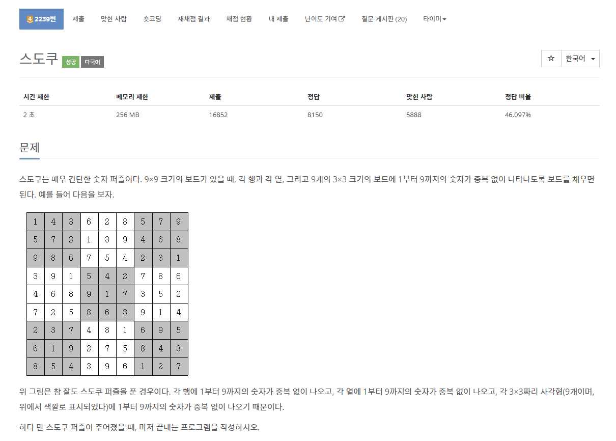 2239번: 스도쿠