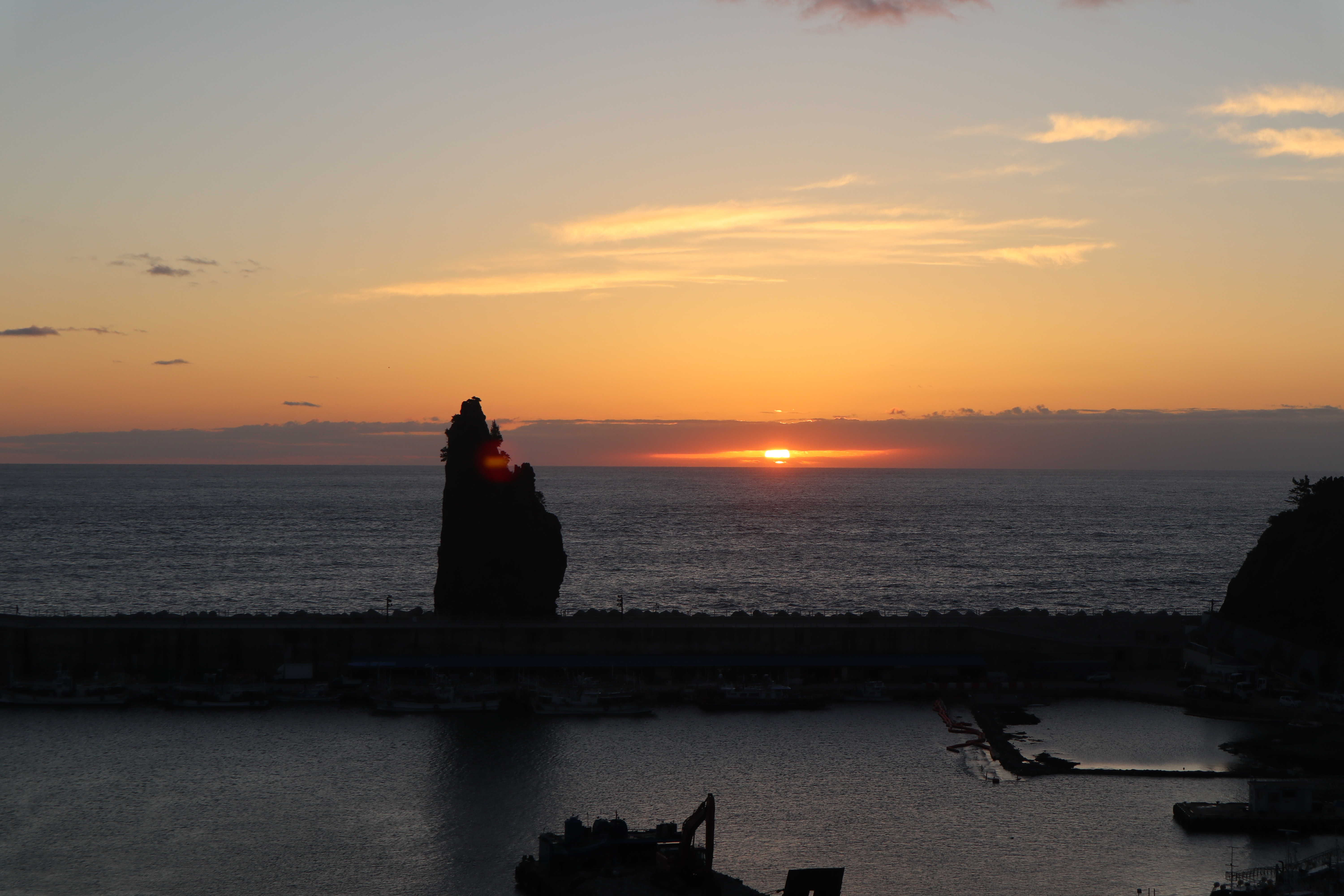 조금 기다리다보니 해가 올라왔는데, 구름이 낮고 얕게 깔려 있어서 바로 보이지는 않았지만