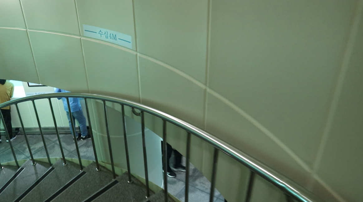 중앙에 엘리베이터도 있었지만 우리는 걸어 내려갔다.