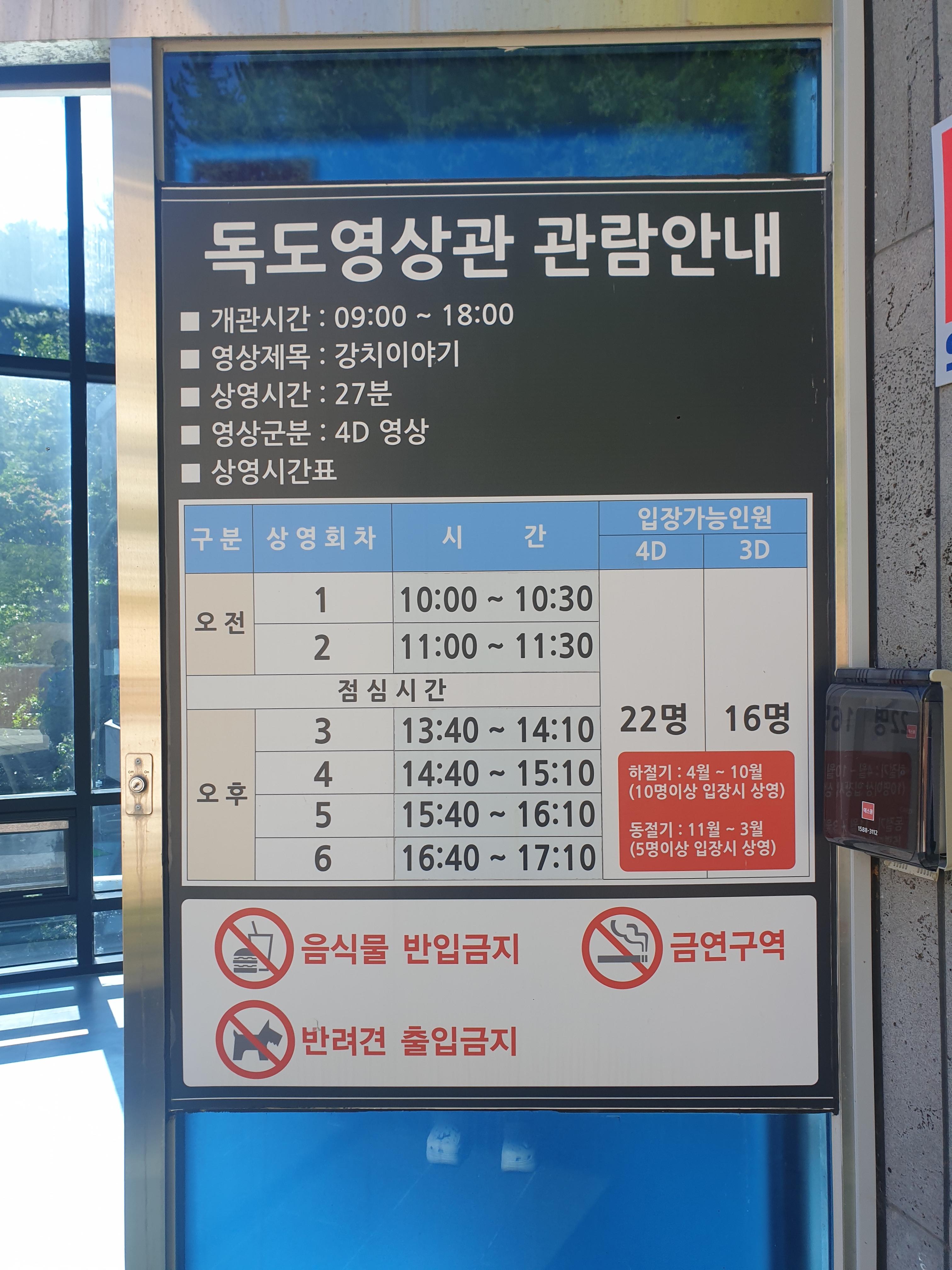주차장에서 엘리베이터를 타고 올라가면 독도 영상관이 나온다.