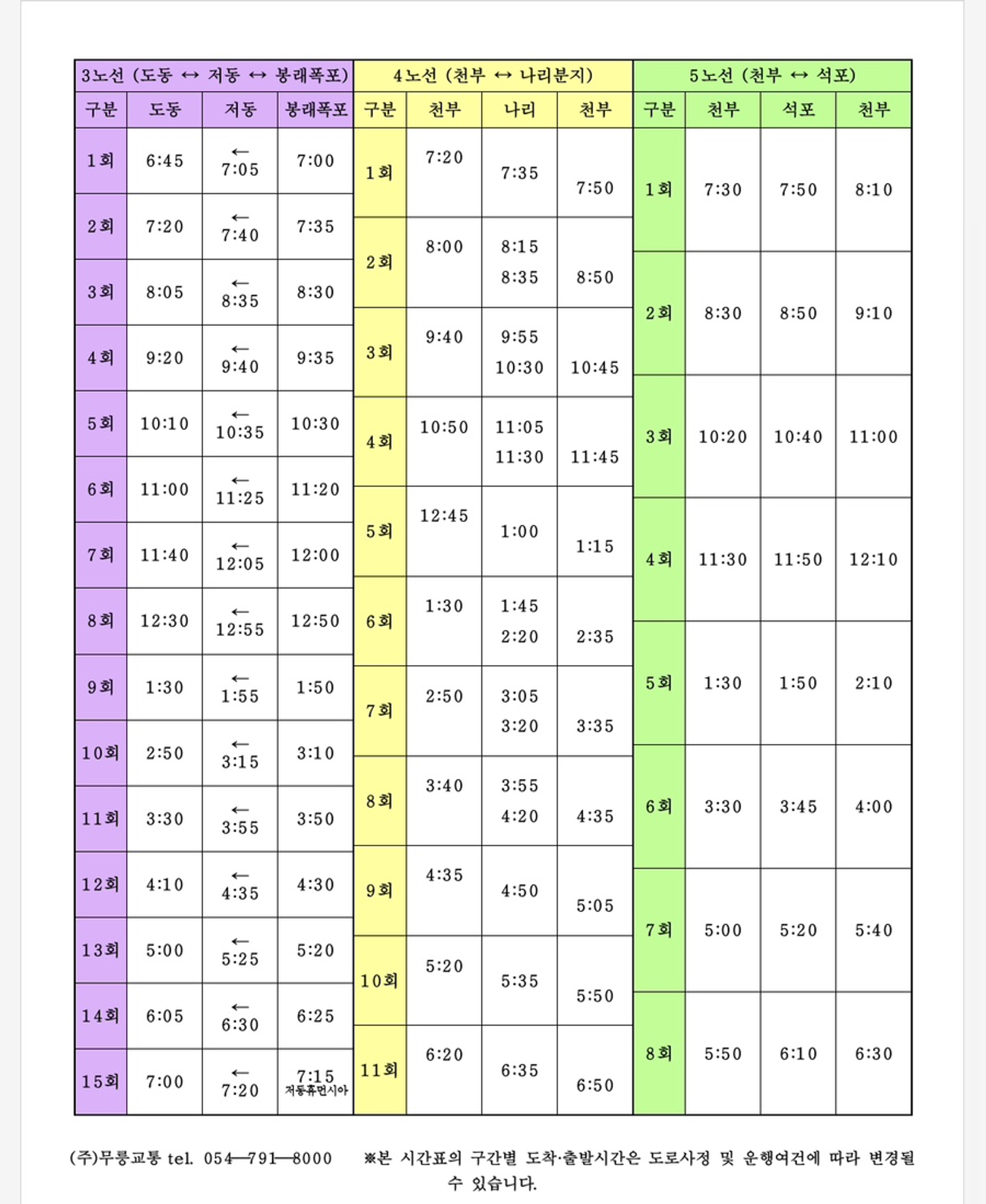 11번 버스 : 천부 출발 (시계 방향) → 천부 도착