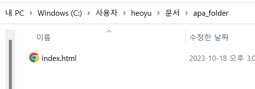 index.html이라는 이름으로 apa_foler 안에 저장한다.