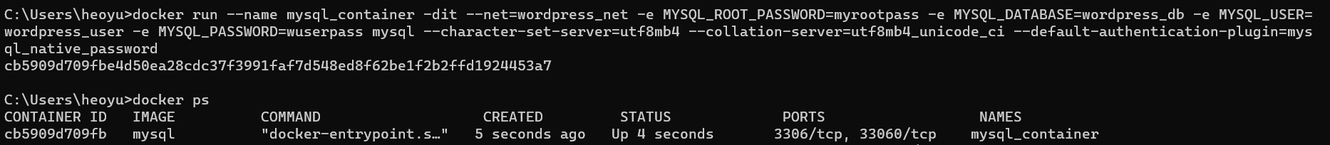docker run --name mysql_container -dit --net=wordpress_net