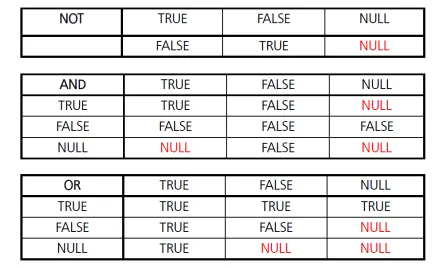 - NOT : 조건문이 NOT TRUE일 때 레코드를 조회